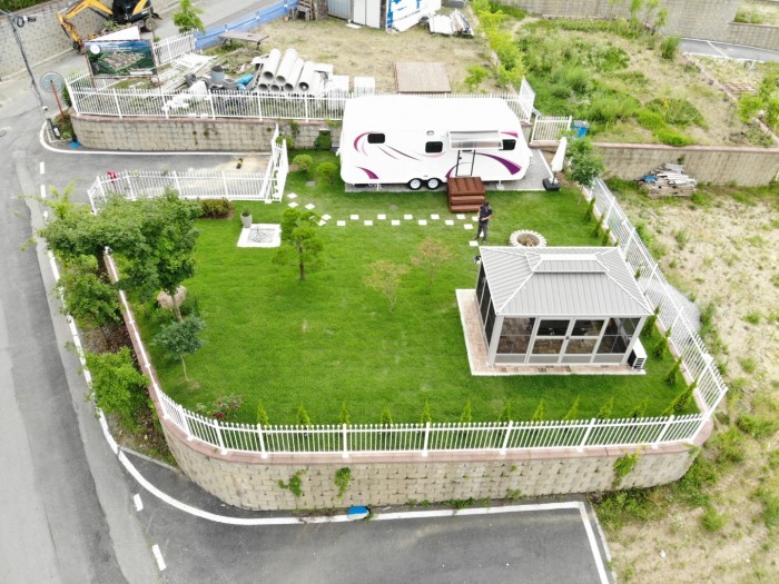카라반 + 농막 + 스틸하우스 + 잔디마당